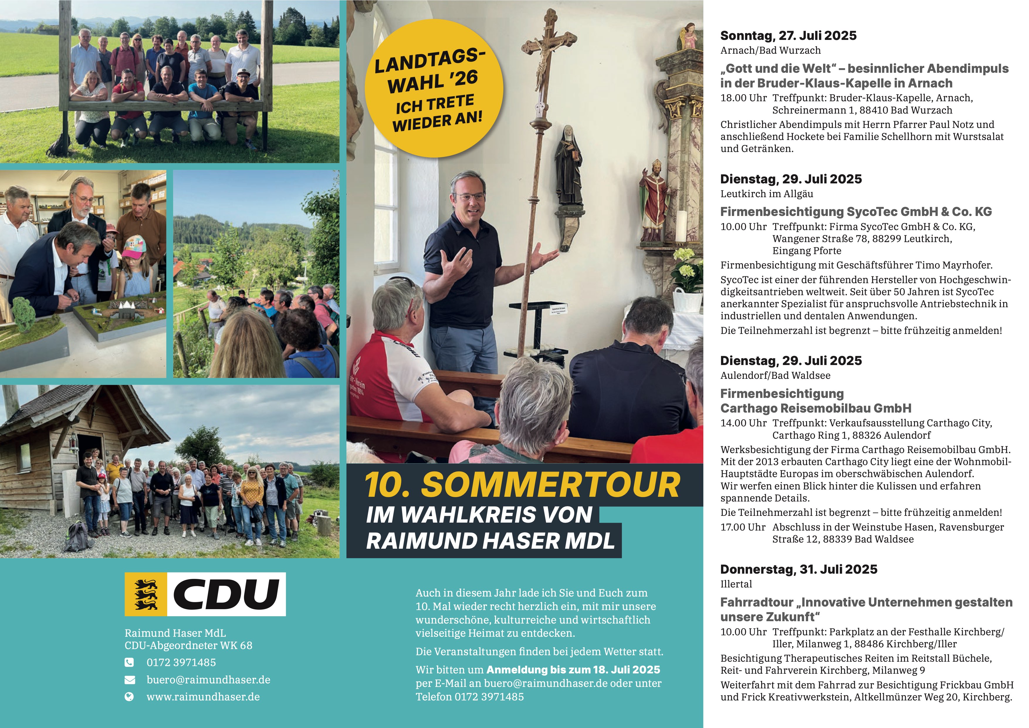 FLYER SOMMERTOUR zum Download: buero [at] raimundhaser.de Telefon >>> 0172 3971485">https://www.raimundhaser.de/wahlkreis/sommertouren/sommertour-2025.html