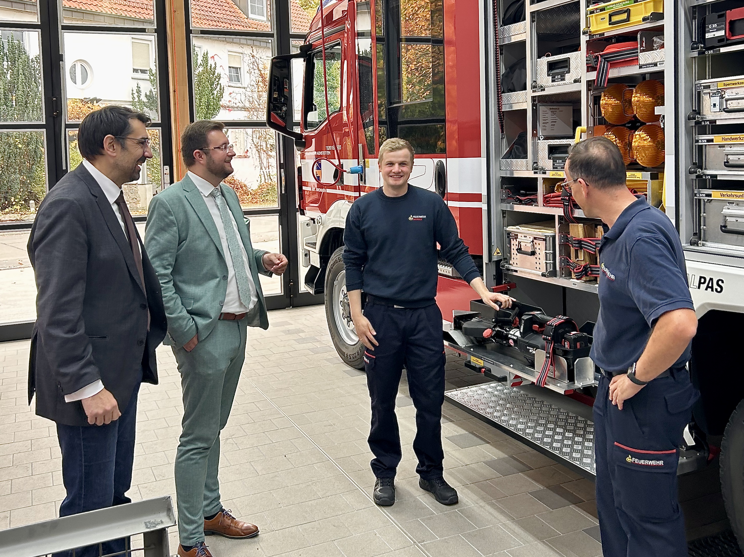 Nach Gesprächen und einem Rundgang durch das Rathaus, bei dem das Team der Verwaltung vorgestellt wurde, besuchten Dahler und Scholz den Ortsteil Bronnen. Dort besichtigten sie das umgebaute Feuerwehrgebäude. Es soll neben den Aufgaben der Feuerwehr auch als Begegnungsstätte für die Dorfgemeinschaft dienen. Dahler zeigte sich beeindruckt: „Das ist ein Beispiel dafür, wie funktionale Infrastruktur und soziales Leben verbunden werden können.“