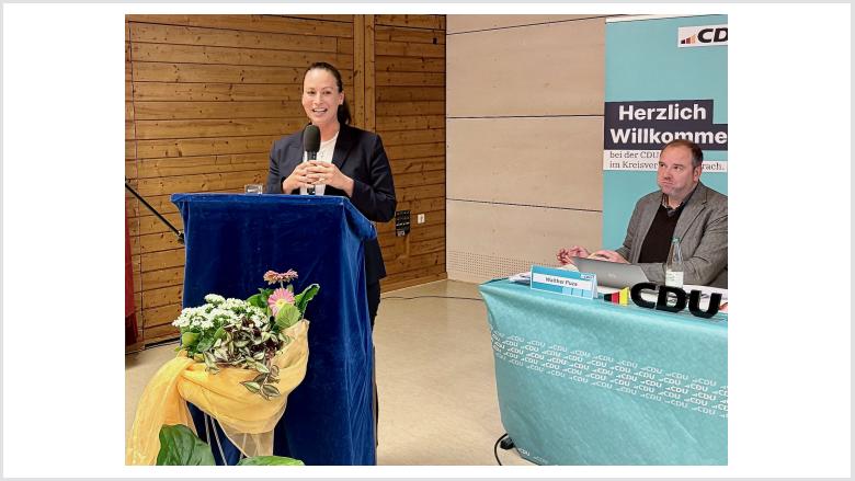 Höhepunkt des Abends war die erfrischende Rede von Caroline Bosbach MdB zum Thema: "Moderne Politik braucht klare Werte und frische Ideen". Es folgte eine Diskussion mit ihr und Beiträgen einiger Mitglieder zu aktuellen bundespolitischen Themen.