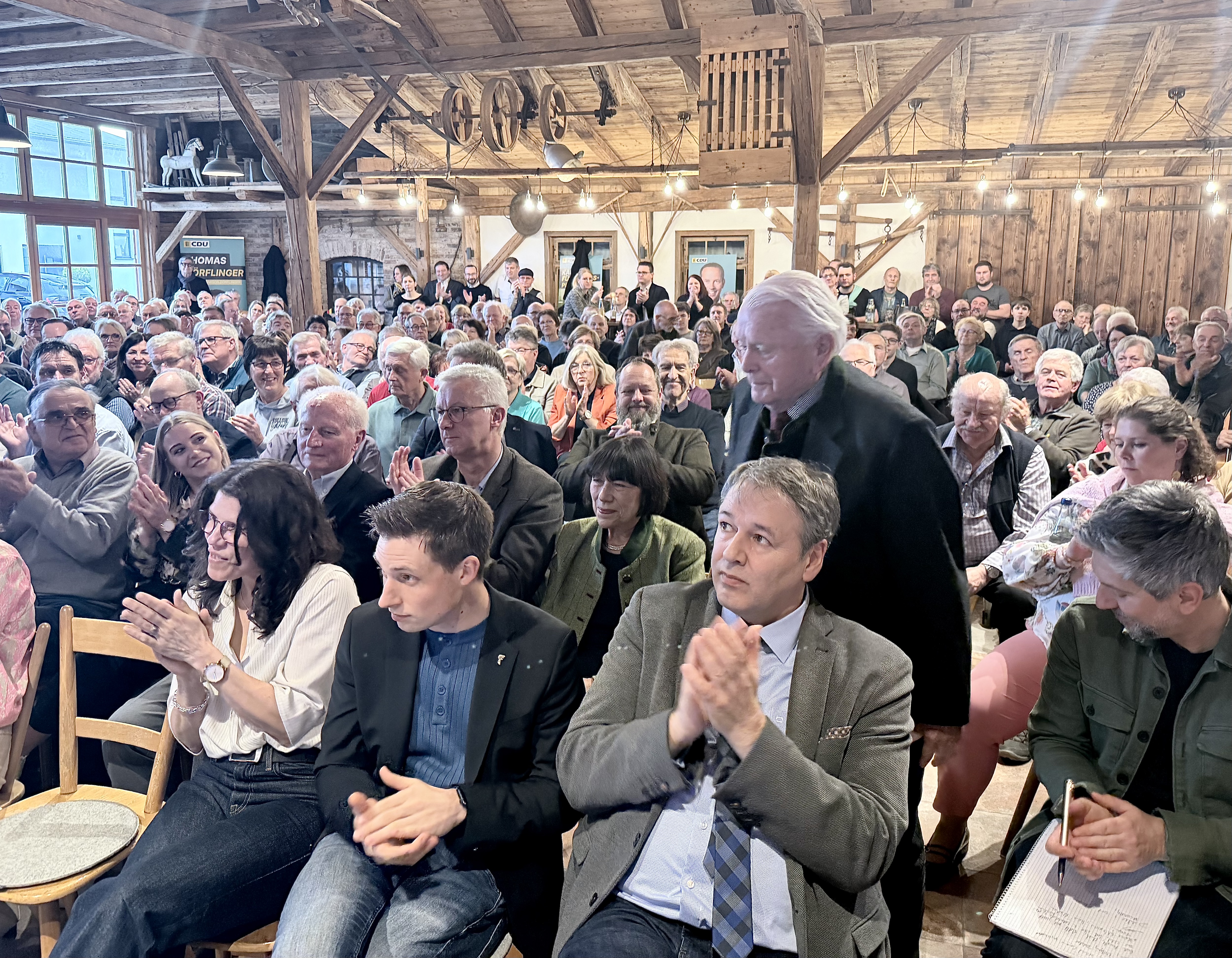 Aufgrund des überwältigenden Besucherandrangs und der vollständig ausgeschöpften Platzkapazitäten konnten aber nach einiger Zeit keine weiteren Gäste mehr aufgenommen werden. Dies bedauern die Organisatoren sehr. Als kleine Entschädigung möchte die CDU - gemeinsam mit Thomas Dörflinger MdL - alle, die keinen Platz mehr bei dieser Veranstaltung bekommen haben, zu einem Vesper einladen. Ebenfalls wird versucht, auch Manuel Hagel als Gast für diesen Termin zu gewinnen.