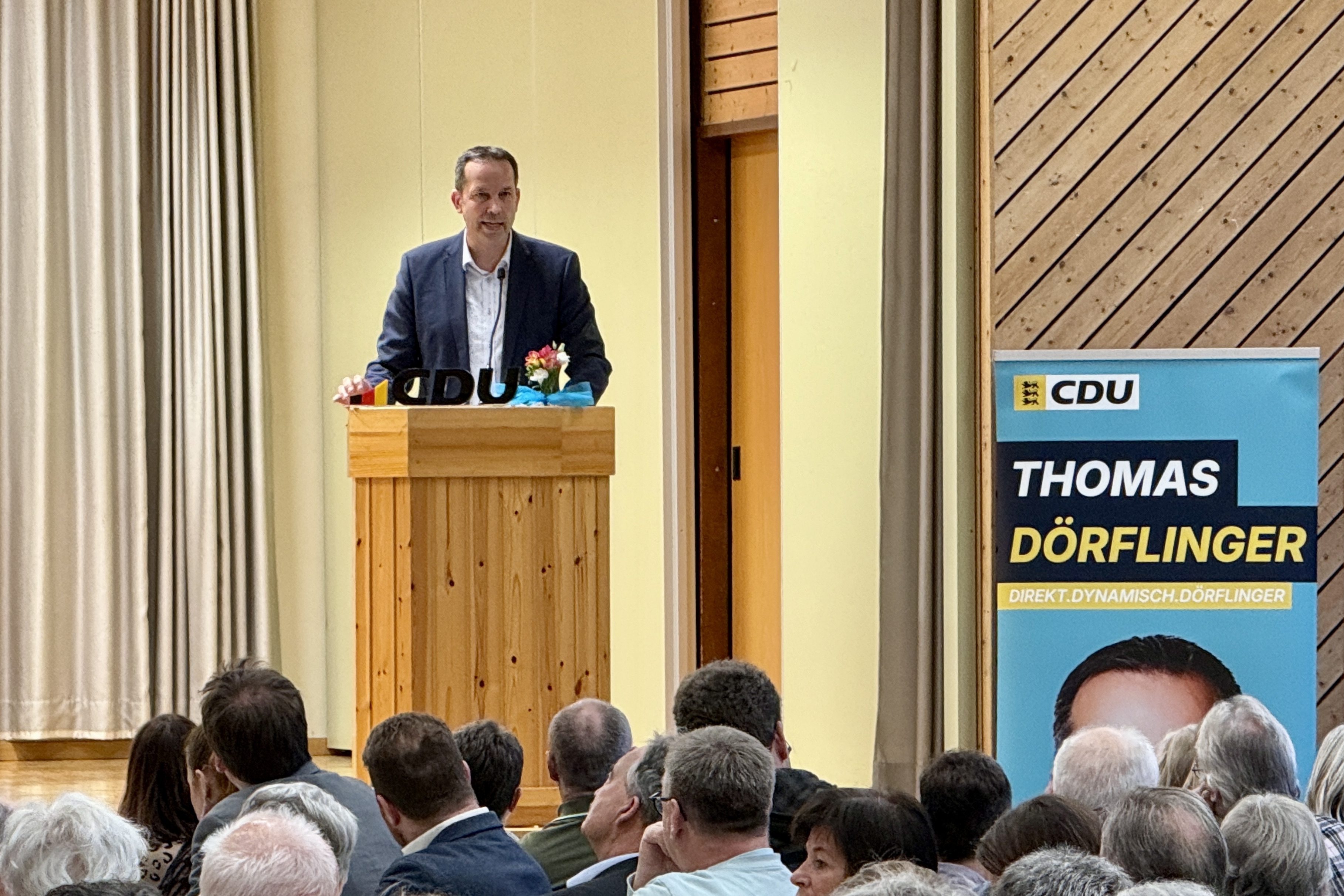 Dörflinger blickte auf zehn Jahre als Landtagsabgeordneter zurück und machte deutlich, dass politische Erkenntnis nicht allein im Parlament entstehe, sondern vor allem im direkten Gespräch vor Ort – in Vereinen, Betrieben, beim Ehrenamt. Nähe zu den Menschen sei für ihn kein Wahlkampfslogan, sondern Grundlage seiner politischen Arbeit. Er warb für eine Politik mit „Staub an den Schuhen“, die nicht aus dem Elfenbeinturm heraus agiere, sondern zuhört und Verantwortung übernimmt.