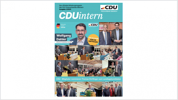 Unser CDUintern erscheint viermal im Jahr und wird allen Mitglieder postalisch zugestellt. Hier die aktuelle Version zum Download oder zum Direkt-Lesen.